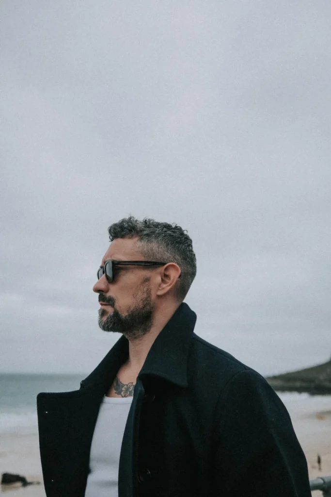 Styled over a simple white tee, the coat takes on a cinematic quality against the backdrop of grey skies and sea spray. It’s understated, classic, and quietly confiden, the kind of piece that feels just as right for city commutes as it does for coastal walks.